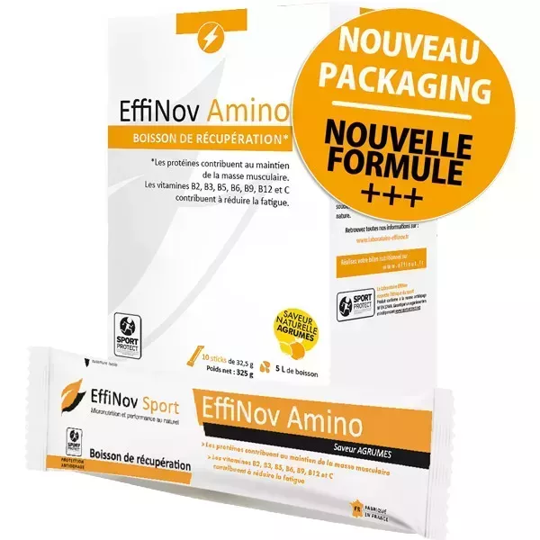 Denna proteindryck från EffiNov konsumeras efter intensiv ansträngning som ett maraton, triathlon eller långdistanstrail. Det finns 10 portionspåsar per förpackning.