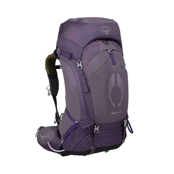 Osprey Aura AG 50-ryggsäcken i lila är idealisk för flerdagarsturer med lätt packning. Designad för kvinnor erbjuder den exakt passform och utmärkt komfort tack vare AntiGravity-upphängningen.