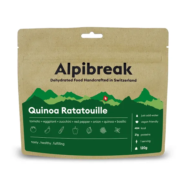 Quinoa Ratatouille är en dehydrerad, komplett och balanserad vegansk rätt som kombinerar quinoa och medelhavsgrönsaker för att erbjuda en varm, näringsrik och lättlagad måltid under dina outdooräventyr.
