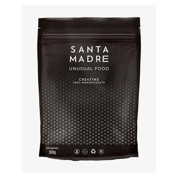 Kreatin Santa Madre 300 g är ett ultrarent kreatinmonohydrat utan tillsatser, utformat för att öka styrka, kraft och återhämtning – idealiskt för både explosiva sporter och uthållighet.
