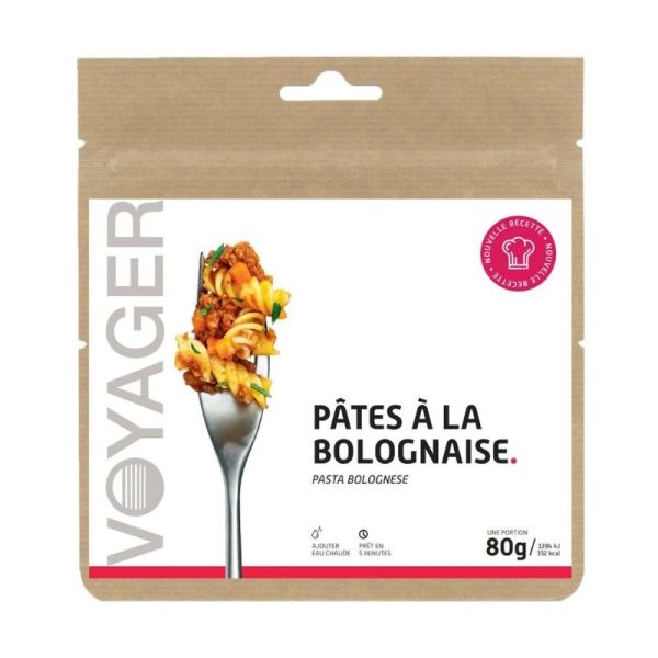 Denna Pasta bolognese-måltid från Voyager är en rätt på 80 g och 260 g efter rehydrering. Den uppskattas av de yngre men även av de äldre tillsammans med en dessert för att komplettera energitillskottet.