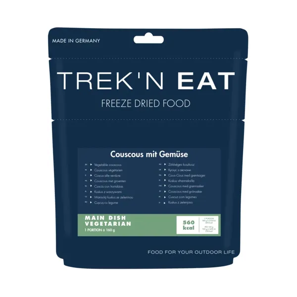 Upptäck smakerna från Nordafrika med Trek'n Eats vegetariska couscous. Denna rätt baserad på durumvetemannagryn och varierade grönsaker lockar med sin smakrika karaktär och näringsvärde. Perfekt för dig som vill ha en köttfri måltid fylld med smak.